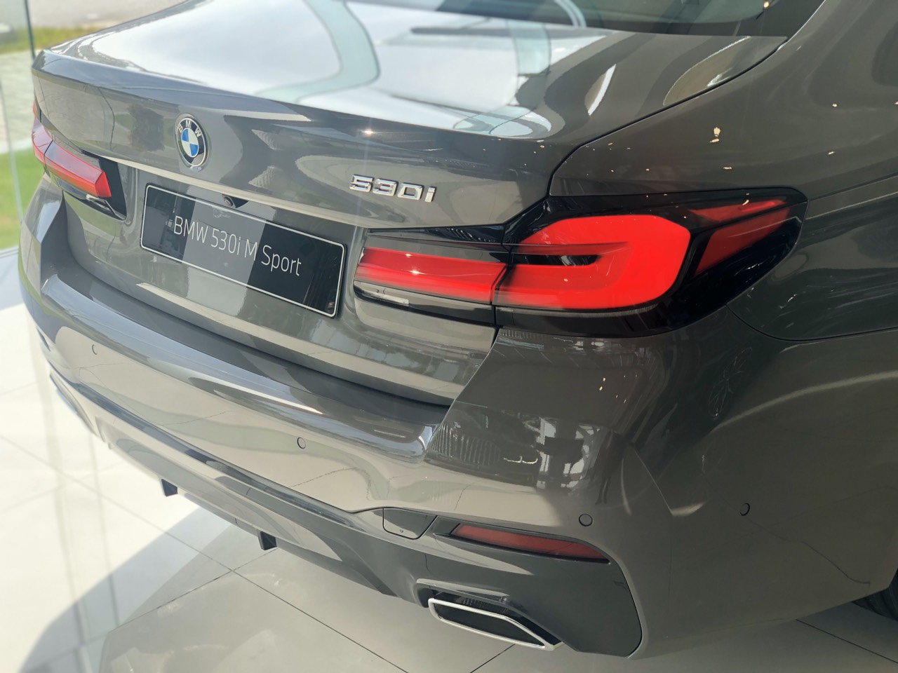 BMW 530i MSport sở hữu ống xả kép hình lục giác giúp tăng sức mạnh cho thiết kế của bộ khuếch tán phía đuôi xe. Tuy nhiên, dù là phiên bản nào thì xe cũng được trang bị các cảm biến hỗ trợ đỗ xe.
